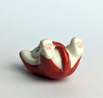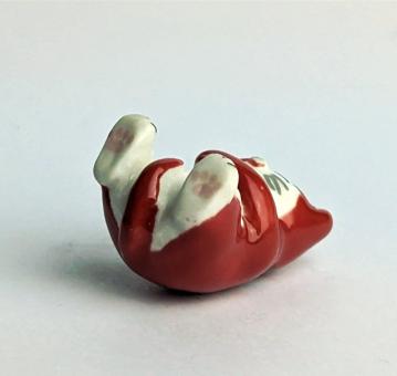 Die rot-weiße Farbkombination ist besonders auffällig und bringt eine fröhliche Atmosphäre in jeden Raum. Die goldene Verzierungen verleihen der Keramikfigur das gewisse Extra und machen sie zu einem echten Hingucker.