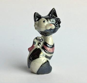 Die handbemalte Keramikfigur in der Form einer Katze ist ein besonderes und charmantes Kunstwerk, das jeder Sammler und Katzenliebhaber in seinem Zuhause haben sollte. Mit einer Größe von nur 2 cm ist diese Figur klein und zierlich, aber dennoch voller Details und Charakter.