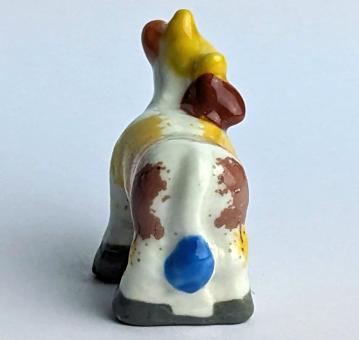 Die künstlerisch liebevoll handbemalte Keramikfigur einer stehenden Kuh ist ein wunderschönes und einzigartiges Kunstwerk für jeden Kuh-Liebhaber. Mit einer Größe von nur 2 cm passt diese Figur perfekt in jedes Regal oder jede Vitrine und ist somit auch eine tolle Ergänzung für jede Sammlung.
