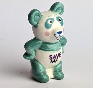 Diese faszinierende Keramikfigur in Form eines Panda ist ein echter Hingucker in jeder Sammlung. Der kleine Panda ist liebevoll von Hand bemalt und zeigt sich in einer schwarz-weißen Farbgebung mit rosa Wangen und einem Schriftzug "Save Me" auf seiner Brust. Mit einer Größe von nur 2 cm ist die Figur besonders dekorativ und kann überall platziert werden.