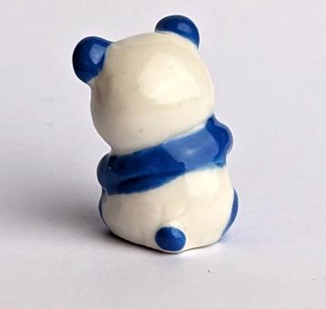 Diese wunderschöne Keramikfigur in Form eines Panda ist ein echter Hingucker in jeder Sammlung. Der kleine Panda ist liebevoll von Hand bemalt und zeigt sich in einer blau-weißen Farbgebung mit rosa Wangen. Mit einer Größe von nur 2 cm ist die Figur besonders dekorativ und kann überall platziert werden.